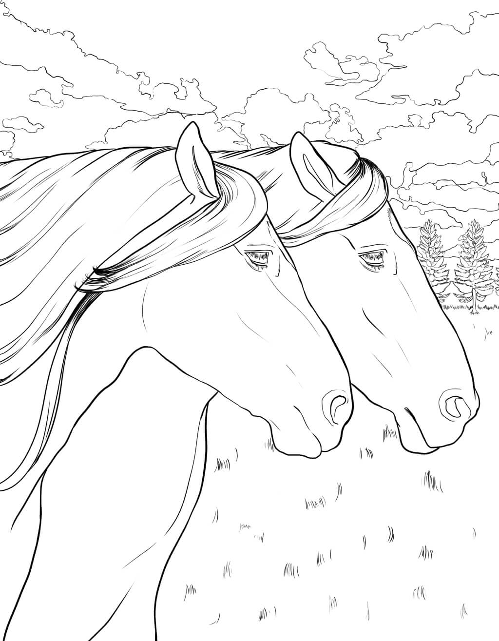 Bring the beauty of horses to life with our stunning collection of horse coloring sheets. Artist Andrea Mendez has created 32 realistic horse coloring pages that capture the grace and strength of these amazing animals. Each page shows different horse breeds in natural settings that horse lovers will enjoy coloring.